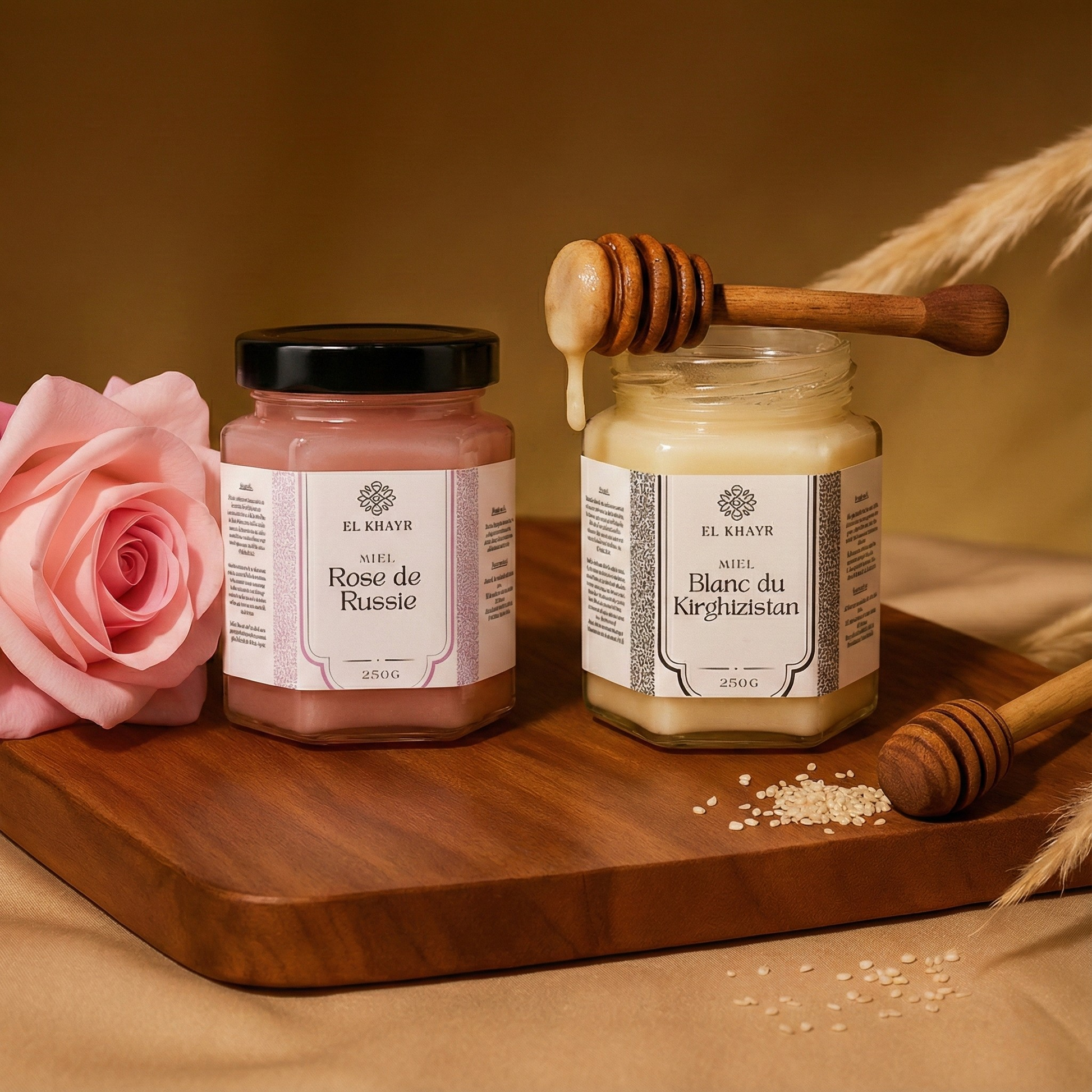 Le Coffret Découverte invite à explorer deux expressions du miel rare : la pureté du Blanc, et la douceur infusée du miel Rose. Deux origines, deux caractères, réunis dans un écrin épuré. Chaque dégustation devient un voyage intérieur, une rencontre entre matière et lumière. Un moment suspendu, simple et vrai, pour redécouvrir la beauté d’un miel authentique.